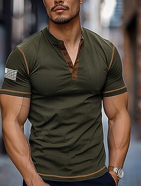 2026. július 4. 250. Emléknap Férfi Vintage Tervező Henley Rövid Ujjú Póló Kényelmes Kültéri Napi