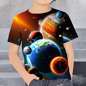 Fiú 3D Galaxis Póló Rövid ujjú 3D nyomtatás Nyár Tavasz Aktív Sportok Divat Poliészter Gyerekek 3-12 év Szabadtéri Napi Otthoni Normál