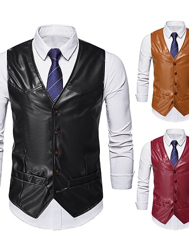 Férfi Prsluk Bőr mellény Születésnapi buli Alkalmi / Napi Hagyományos / Klasszikus Minden évszak Bőrutánzat Könnyű Egyszínű / Sima szín Egysoros Gallér nélküli Karcsúsított lilásvörös Fekete Barna
