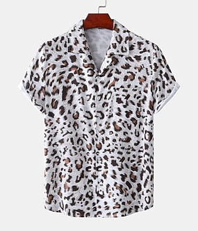 Férfi Állat Leopárd Ing Hawaii ing Aloha ing Rövid ujjú Ing Térfogatcsökkenés Tropikus Divat Hawaii Szabadtéri Tengerpart Utca Fekete Barna Lóhere S M L