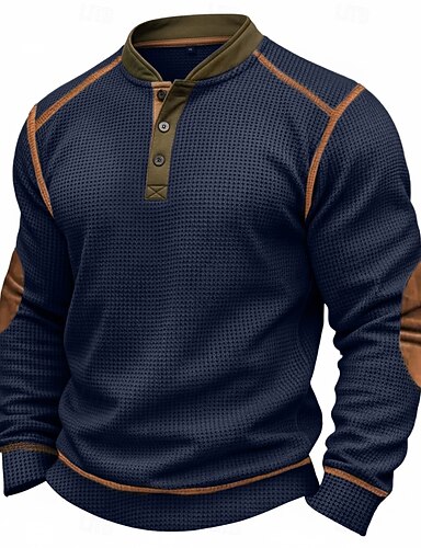 Férfi Gofris póló Póló Gofri Henley ing Hosszú ujj Henley Ősz Tél Cross-Season Tömör szín Hagyományos / Vintage Színes Szabadtéri Otthon Sport & Szabadtéri Fekete Bor Sötétkék Férfi felső póló