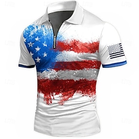 Emléknap Férfi Amerikai amerikai zászló Póló Rövid ujjú póló 3D nyomtatás Terített nyak Ing Vintage Retro Hazafias Napi Fesztivál Medence Fekete Rubin Nyár Tavasz Ruházat S M L XL XXL XXXL