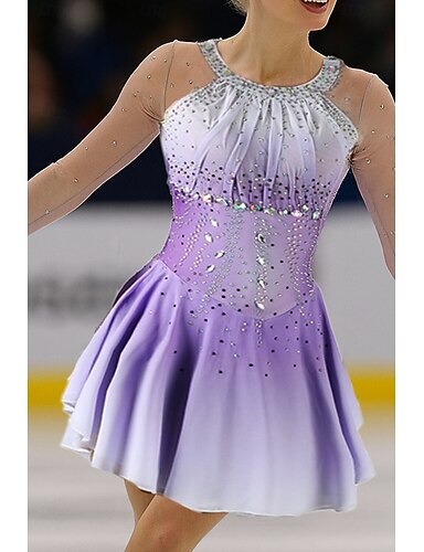 Kűrruha Női Lány Klizanje na ledu Ruhák Sötétlila Kollázs Aszimmetrikus szegély Háló Spandex Nagy rugalmasságú Edzés Verseny Kűrruhák Klasszikus Kristály / Strassz Hosszú ujj Jégkorcsolyázás