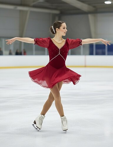 műkorcsolya ruhák lány korcsolya ruhák piros patchwork rugalmas edzés versenykorcsolya ruházat klasszikus kristály / strassz hosszú ujjú műkorcsolya