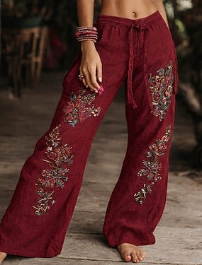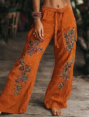 Női Boho nadrág Nadrág Alkalmi Boho Teljes hossz Természetes Virág Zseb Rugalmas derék Nyomtatás kellemes Szabadtéri Kényelmes Hétköznapi viselet Alkalmi Medence Zöld Bézs Nyár Normál