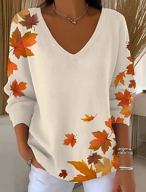 Női Pulóver Elegáns Divat Utcai sikk Virágos Grafika V-alakú Kötött Hosszú ujj Normál felsők Kötött Hétvége Sárga Gyömbér Ősz Tél