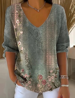 Női Blúz Öltözetes felsők Kollázs Színes Sima Elegáns Szüret hölgyek Hosszú ujj V-alakú Normál felsők Napi Munka Szabadság Medence Ősz Tél