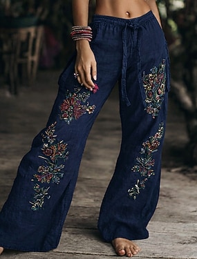 Női Széles lábszár Nadrágok Palazzo nadrág Divat Boho Teljes hossz Magas derék Virág Zsinór Rugalmas derék Nyomtatott Lélegzési képesség Kényelmes Utca Hétköznapi viselet Alkalmi Medence Katonai zöld