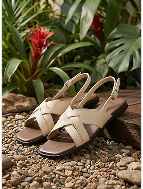 női sikkes krémszínű szőtt lapos szandál - kényelmes, szögletes orrú, pántos papucsok bokapánttal, kültéri üdülőhelyekre, trópusi nyaraláshoz, sétákhoz &hétköznapi nyári ruhák
