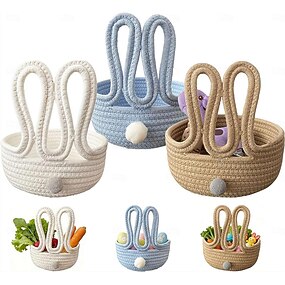 húsvéti asztali nyúlkosár-szervező, többcélú uzsonnatartó otthoni vegyes dolgok szervező kosár többcélú hordozható tárolórekesz kozmetikai rágcsálnivalók húsvéti parti ajándékokhoz