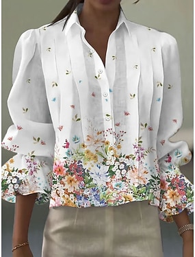 Női ing vászon jellegű lélegző könnyű virágos grafika elegáns bohemia vintage hosszú ujjú ing gallérral normál felsők napi munka ünnepi fodor kék fehér narancs bézs nyár tavasz