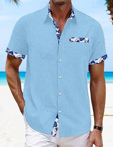 Férfi Ing vászon ing Nyári póló Hawaii ing Színes Vakáció Curise Fekete Fehér Arcpír rózsaszín Sötét tengerészkék Rövid ujjú Letűrhető gallér Tavaszi nyár Ruházat Kollázs