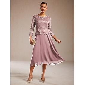 Női Midi ruha Sifon ruhák Elegáns Estély Esküvői vendég Flitter Csipke Normál Tömör szín Háromnegyedes Terített nyak Arcpír rózsaszín