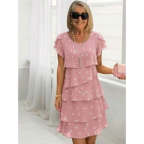 Női Mini ruha hétköznapi ruha Sifon ruhák Virágos ruha Peplum ruhák Elegáns Divat Modern Szabadtéri Vakáció Alkalmi Normál Virágos Rövid ujjú Terített nyak Medence Arcpír rózsaszín Rózsapiros Nyár