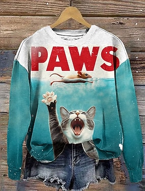 Női póló hosszú ujjú grafikus állat macska vintage stílusos klasszikus hosszú ujjú V nyakú normál felsők napi nyomtatás fekete tavasz ősz előtavasz