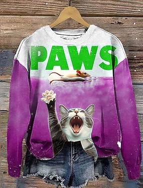 Női Póló Nyomtatott Cica Divat Rövid ujjú Kerek Normál felsők Napi Hétvége Fekete Nyár 3D cat