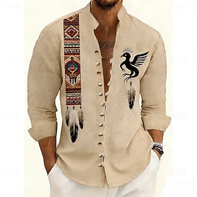 Férfi Etno Thunderbird Indián toll Ing Álló galléros ing Hosszú ujj Vintage Retro Hétköznapi Vakáció Tavasz Ősz Mandarin gallér Álló gallér 3D nyomtatás Gomb lefelé Vászonszerű ing Medence Lóhere