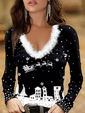 Karácsonyi Női Blúz Grafikus Boros Pohár Hétköznapi Hosszú Ujjú V Nyak Szabványos Felsők Mindennapi Foltvarrásos Nyomás Fekete Világos Zöld Piros Kék Ősz Tél