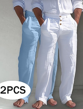 Férfi Vászon nadrág Nadrág Kosztüm Nyári nadrág Rakott nadrág Zseb Egyenes lábbal Sima Mokaszinok Mekano Előírásos Üzleti Hétköznapi Divat Klasszikus Fehér Sötétkék Mikroelasztikus