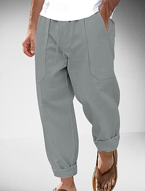 Férfi Vászon nadrág Nadrág Nyári nadrág Strand nadrág Alkalmi nadrág Zseb Rugalmas derék Többszörös kiszerelés Tömör szín Mokaszinok Légáteresztő Teljes hossz Szabadtéri Otthon Napi Szabadság