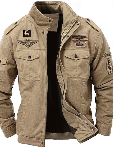 férfi pamut hímzett katonai kabát teherkabát vállpántokkal hosszú ujjú állógallérral több zsebes kabát kamionos kabát rénszarvas mintás taktikai felsőruházat