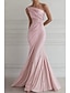 Harang fazon Földig érő Estélyi ruhák Elegáns Ujjatlan Félvállas Esküvő Előírásos Rózsaszín ruha Sztreccs szatén val vel Rakott