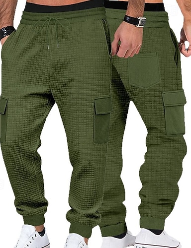 Férfi Melegítőnadrágok Kocogó Nadrág Cargo melegítőnadrág Alkalmi nadrág Rugalmas derék Zsinór Többzsebes Egyszínű Mokaszinok Teljes hossz Szabadtéri Napi Futás Szabadság Egyszerű Fekete Medence