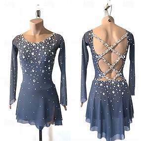 Kűrruha Női Lány Klizanje na ledu Ruhák Stétszürke Hüvelykujj bújtató halo színárnyalatok Nagy rugalmasságú Professzionális Verseny Kűrruhák Melegen tartani Kristály / Strassz Hosszú ujj