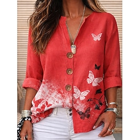 Női Ing Gombok Nyomtatott Állat Pillangó Stílusos Modern Hosszú ujj V-alakú Normál felsők Napi Szabadság Fehér Szürke Nyár