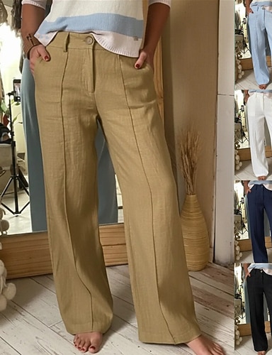 Női Széles lábszár Pamutszövet nadrág Nadrágok Szabadság Alap Alkalmi Teljes hossz Közepes derekú Sima Mokaszinok Nem elasztikus Napi Fehér Kék Zöld Sárgabarack Nyár Tavasz Tavasz, Ősz, Tél, Nyár
