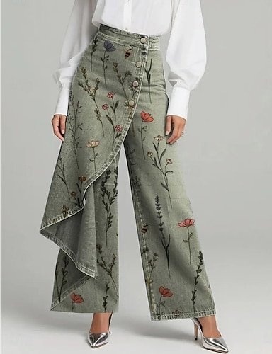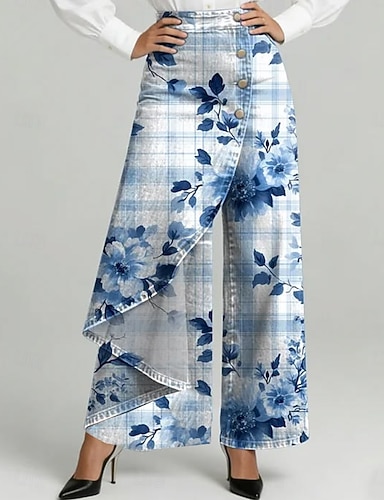Női Vászon Szerű Nadrágok Nadrágok Egyenes Vakáció Divat Utca Teljes Hosszú Középmagas Derék Virágos Grafika Zseb Rugalmas Derék Nyomtatás Kényelmes Kényelmetlen Lélegző Rugalmatlan Naponta