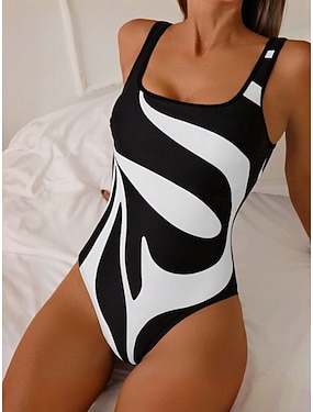 Női Fürdőruha Egy darab Fürdőruha Fodrozott Nyitott hátú Szabadság Strandruházat Mértani Kanálnyak Ujjatlan Fürdőruhák