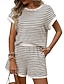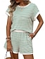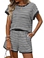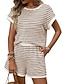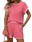 Női Kétrészes szettek Rövidnadrág készletek Rövid ujjú Terített nyak Csíkos Divat Utcai sikk Hétköznapi Napi Szabadtéri Fekete Arcpír rózsaszín Sötétrózsaszín Nyár Normál