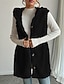 Női Télikabát Polár mellény Prsluk Melegen tartani Kényelmes Gombok Divat Alkalmi Tömör szín Vakáció Hétköznapi viselet Alkalmi Hétvége Szokványos Kapucni Normál Ujjatlan Felsőruházat Fekete Fehér