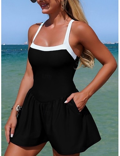 Női Fürdőruha Fürdőruhák Szoknya Fürdőruha Fodrozott Kollázs Elegáns Szabadság Színes Ujjatlan Fürdőruhák