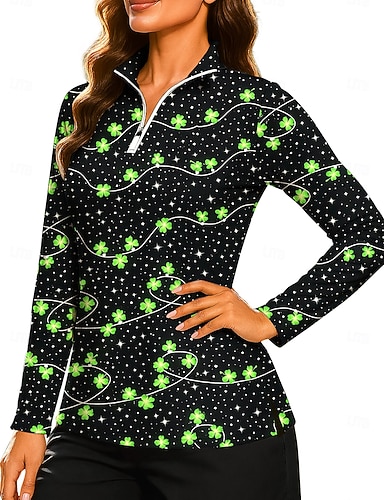 Szent Patrik Női Lóhere Teniszing Ujjatlan Nyomtatott UPF50+ Gyors szárítás Tenisz Golf Tollaslabda Cipzáras gallér Póló Felsők Sötétzöld Spandex Tenisz ruházat