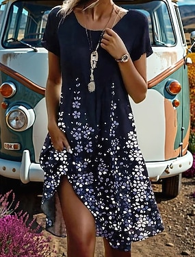 Női Maxiruha hétköznapi ruha Swing ruha A vonalú ruha Boho ruha Alkalmi Napi Őszi ruha Normál Virágos Rövid ujjú V-alakú Fekete Rubin Sötétkék Királykék Tavasz Ősz
