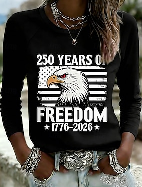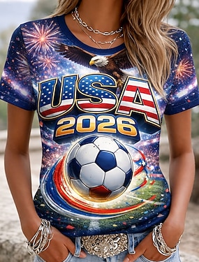 Függetlenség Napja Amerikai Évforduló Patrióta Női Póló Nyomtatás Grafika Típus Zászló Betű Stílusos Klasszikus Kényelmes Rövid Ujjú Kerek Nyak Szokásos Felsők Napi Kék Fekete Piros Nyár Tavasz