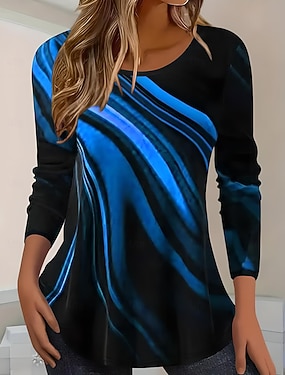 Női T póló Hosszú ujjú Kerek nyak Hosszú ujjú Tunika Ombre Grafika Kényelmes Szokásos Felsők Napi Nyomtatás Khaki Tavasz Ősz Előőszi
