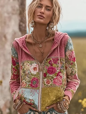 Női Kapucnis felsők Gombok Grafika Mértani Színes Divat Alkalmi Nyomtatott Hosszú ujj Terített nyak Kerek Normál felsők Hétköznapi Utca Medence Arcpír rózsaszín Narancssárga Lóhere Nyár Tavasz Ősz