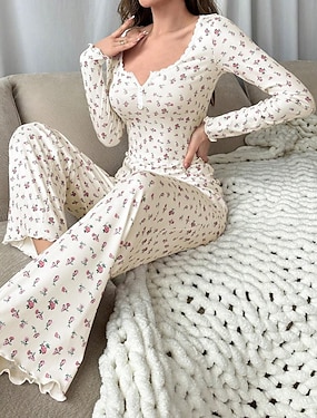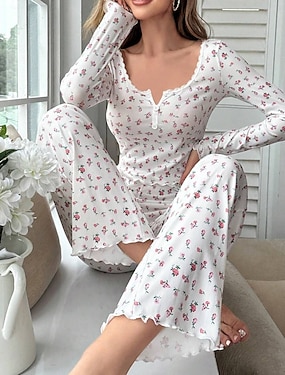Női Pizsama Alkalmi Kényelmes Cseresznye Rugalmas derék Ing Nadrág Otthon Napi Rövid ujjú V-alakú Fehér Nyár Tavasz Ősz Normál