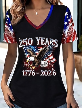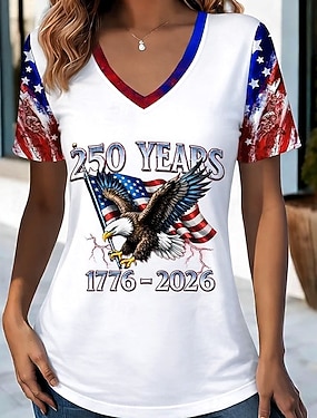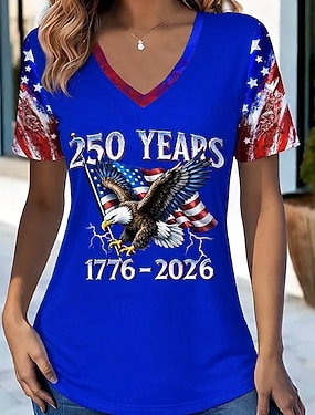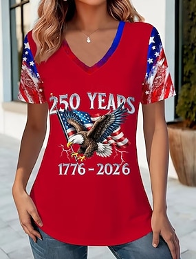 Függetlenség napja Patriótikus Női Póló Zászló Camo Nyomtatás Piros Fehér és Kék Rövid Ujjú V Nyakú Gombstílus Kényelmes Nyári Felső Normál Plusz Méretű Ruházat