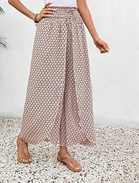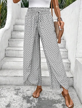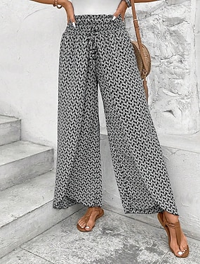 Női Széles lábszár Pamutszövet nadrág Divat Utcai sikk Teljes hossz Magas derék Pöttyös Zseb Elasztikus derékpánt Nyomtatott kellemes Mekano Kényelmes Mikroelasztikus Szabadtéri Utca Fekete Rubin Zöld