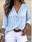 Női Blúz Gombok Nyomtatott Csíkos Stílusos Alkalmi Hosszú ujj V-alakú Normál felsők Napi Medence Nyár Tavasz Ősz