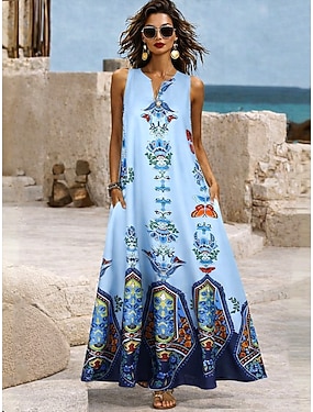 női alkalmi ruha lenge ruha hosszú ruha maxi ruha kék sárga rózsa piros ujjatlan hasított tavaszi nyár v nyak forró s m l xl xxl xxxl