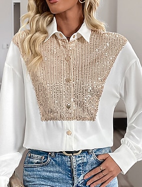 Női Ing Gombos póló Blúz Flitter Gombok Elegáns Stílusos Retró Hosszú ujj Állógallér Normál felsők Napi Alkalmi Party ruhák Fehér Tavasz Ősz