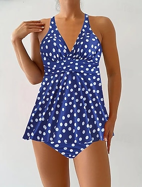 Női Fürdőruha 2 darab Rövidnadrágok Fürdőruha Nyitott hátú Szabadság Strandruházat Pöttyös V-alakú Ujjatlan Fürdőruhák