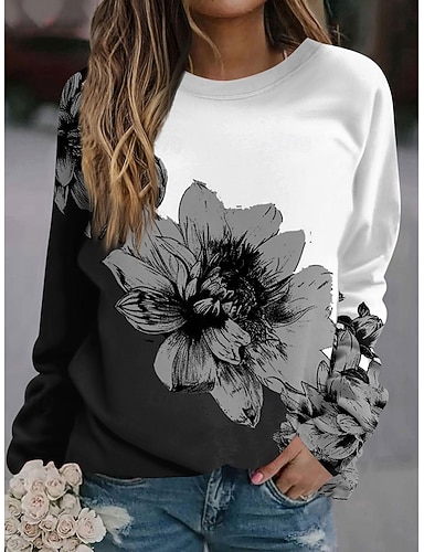 Női Pulóverek Virágos Grafika Alkalmi Hosszú ujj Terített nyak Normál felsők Utca Hétköznapi Szabadság Nyomtatott Fehér Arcpír rózsaszín Medence Bíbor Tavasz Ősz Tél