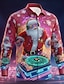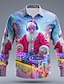 Karácsony Férfi Rajzfilm Mikulás Rénszarvas Ing Gombos póló Hosszú ujj Vicces Szabadtéri Szabadság Tavasz Ősz Térfogatcsökkenés 3D nyomtatás galléros ingek Medence Fehér 1 Fehér Arcpír rózsaszín