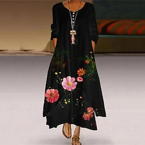 Női Hosszú ruha Maxi ruha hétköznapi ruha Swing ruha Boho ruha Szüret Napi Szabadtéri Hétvége Normál Virágos Hosszú ujj Terített nyak Medence Tavasz Ősz Tél
